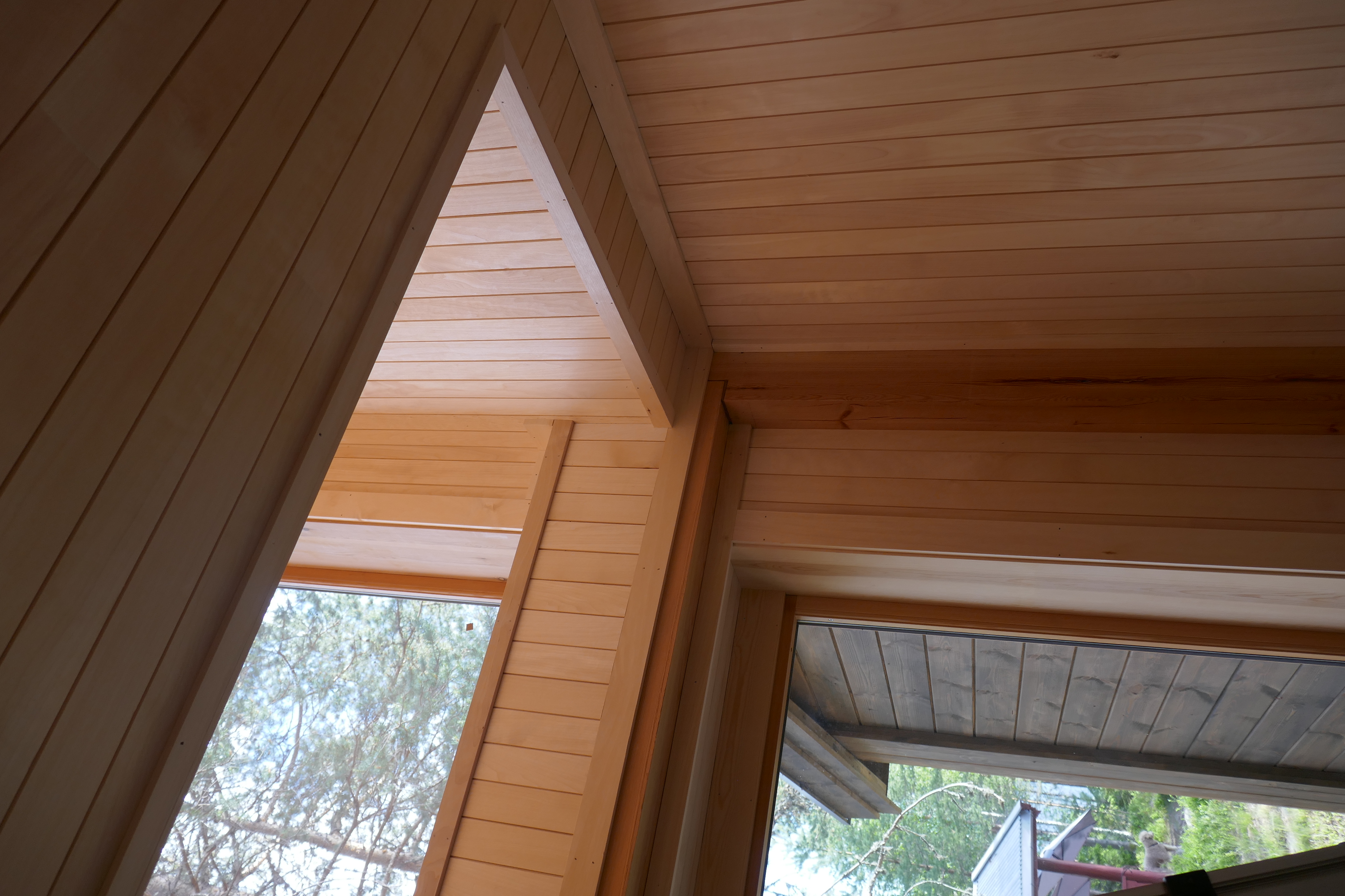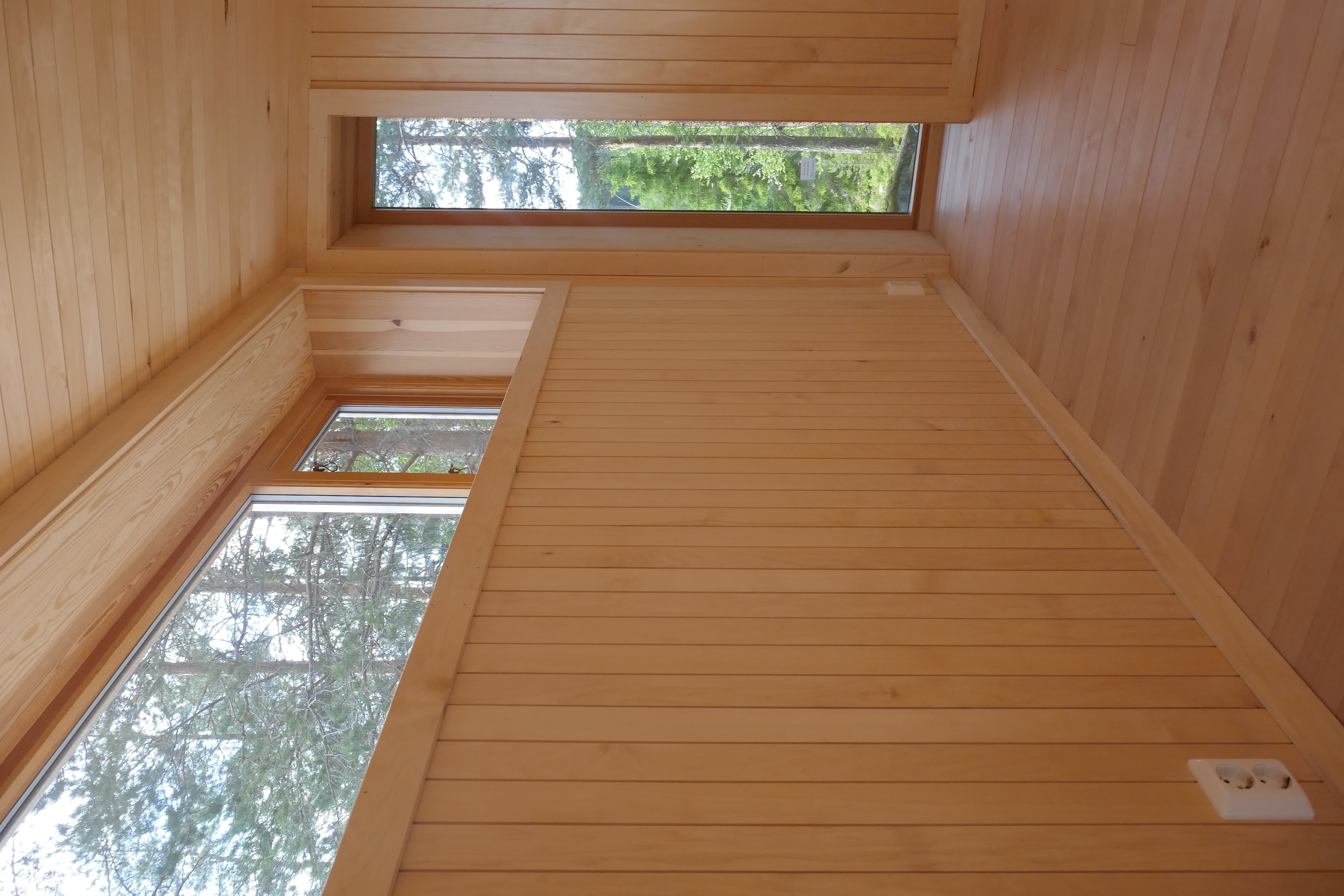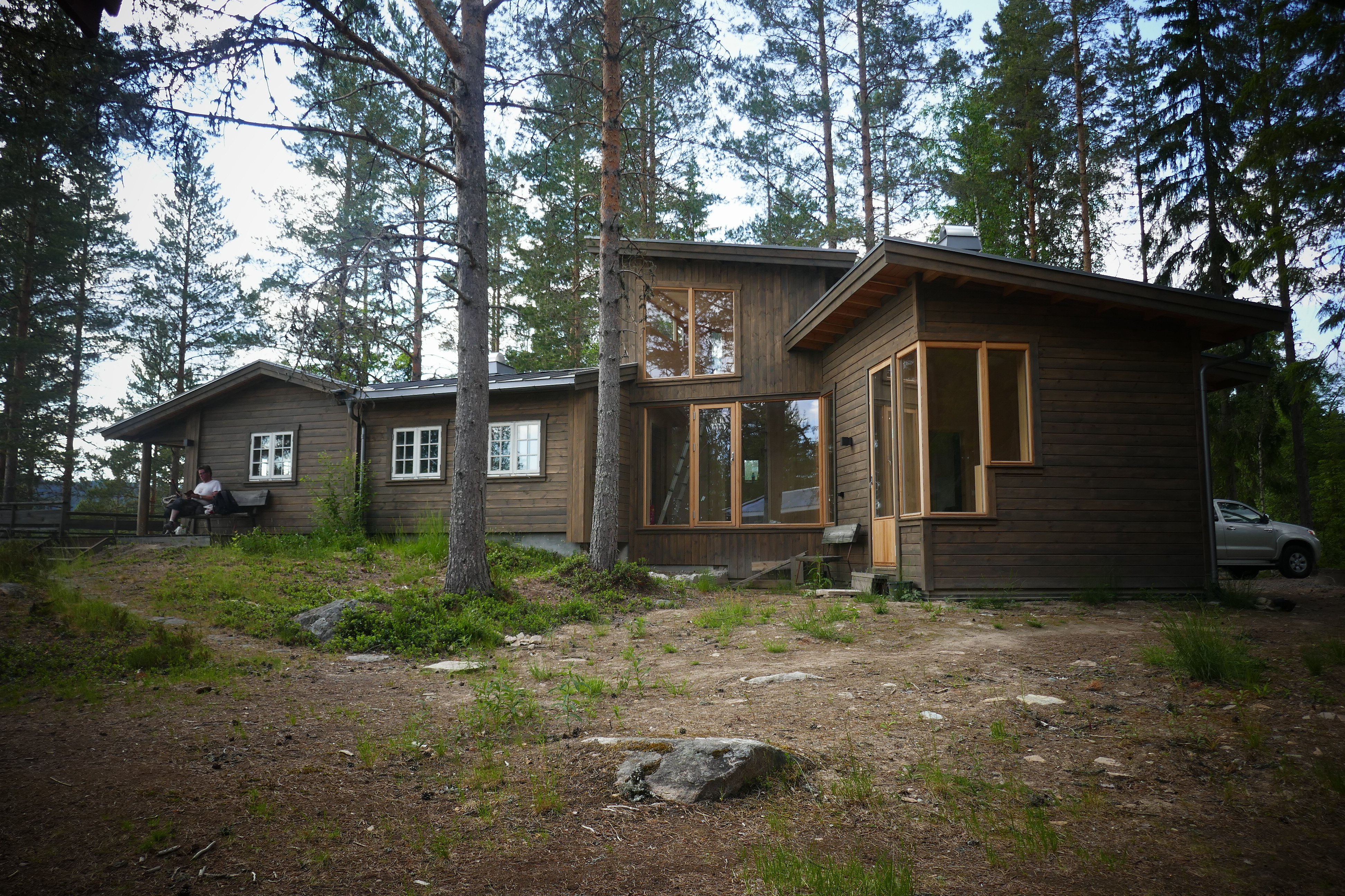 Prosjektet er et tilbygg til eksisterende hytte, ombygging eksisterende hytte samt utforming av et frittliggende verksted for fletthåndverk. Tilbygg til hytte inneholder inngang, hall, 2 soverom og en hems med fin utsikt over en innsjø. Det er tilstrebet en harmoni mellom nybyggenes plassering og konstruksjoner og stedets opprinnelige karakter med vertikale furustammer som rammer inn utsikten mot innsjøen. Det er anvendt panel av seinvokst lokal gran behandlet med jernvitrol utvendig. Det er brukt ospepanel innvendig. Interiørdesign av Tord M. Nielsen. Tømrerarbeid av Jernberg as.